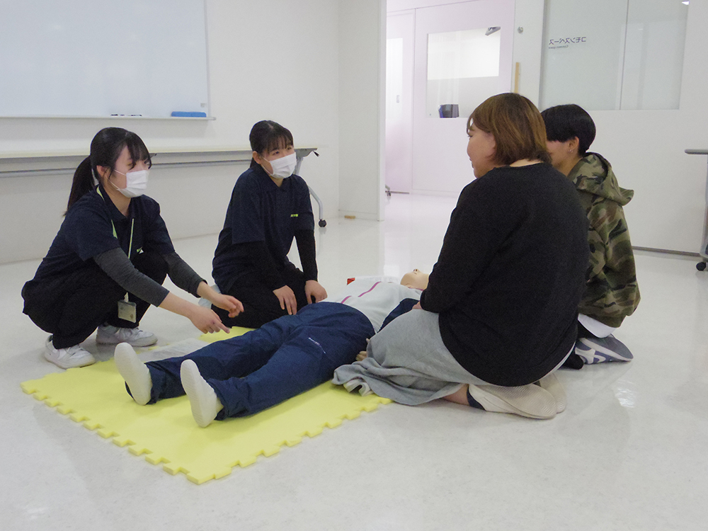 看護学科では香りに癒やされるバスボム作成体験やシミュレーター人形を使った救命救急処置体験を実施しました。