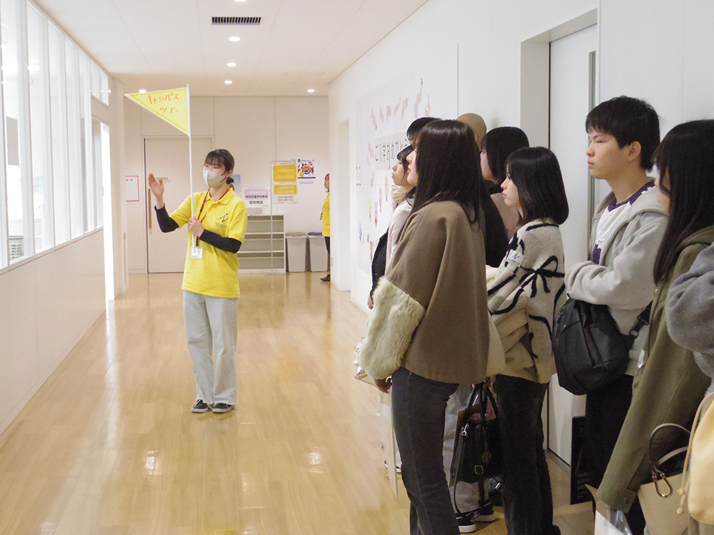 人間教育学部人間教育学科では、学生スタッフによるキャンパスツアーで理科室や図工室など学校さながらの設備を紹介。