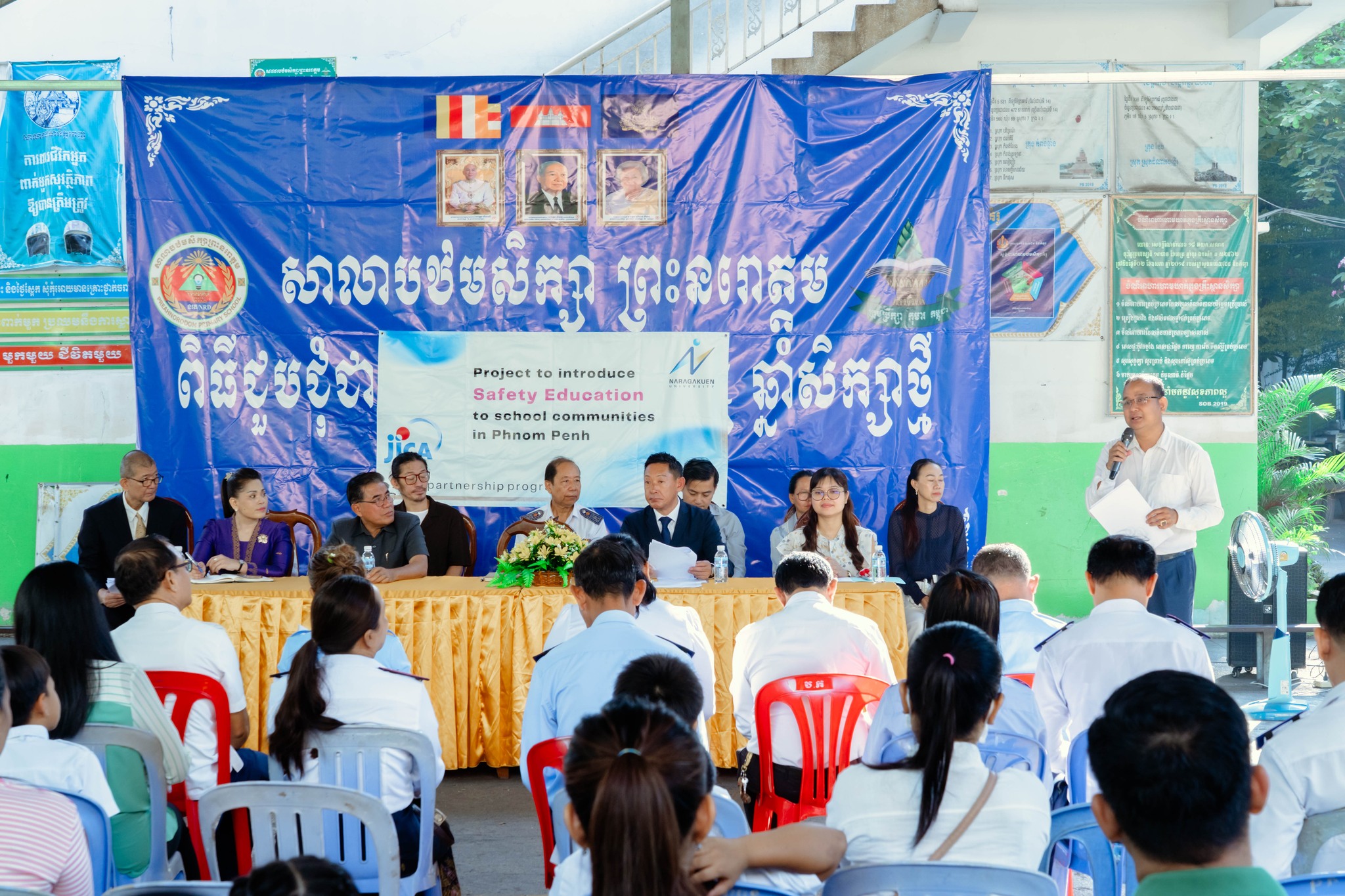 奈良学園大学は、国際協力機構(JICA)との連携により、「カンボジア王国プノンペンにおける学校コミュニティへの安全教育導入プロジェクト」を開始しました。本プロジェクトの一環として、2026年3月28日、プノンペン市のPreah Norodom Primary Schoolにおいて、安全教育プログラムの発足式が開催されました。