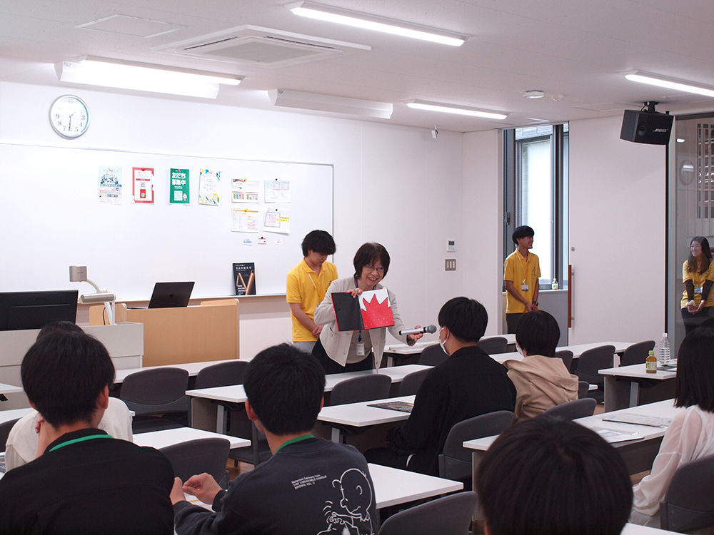 各学部学科では、在学生が各学部・学科の特徴や学べる内容、入試ガイダンス、模擬授業の紹介など、さまざまな企画を説明しました。