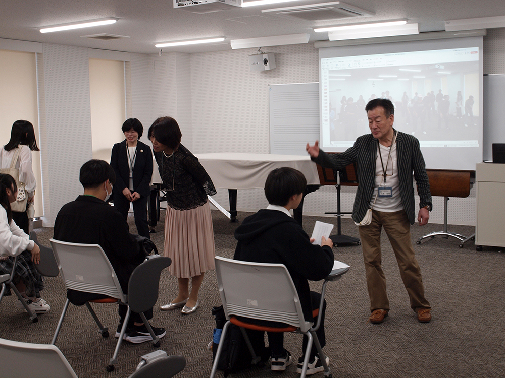 人間教育学部人間教育学科では、「絵本の視覚表現について考えよう」「ボディパーカッション」などの模擬授業を行いました。
