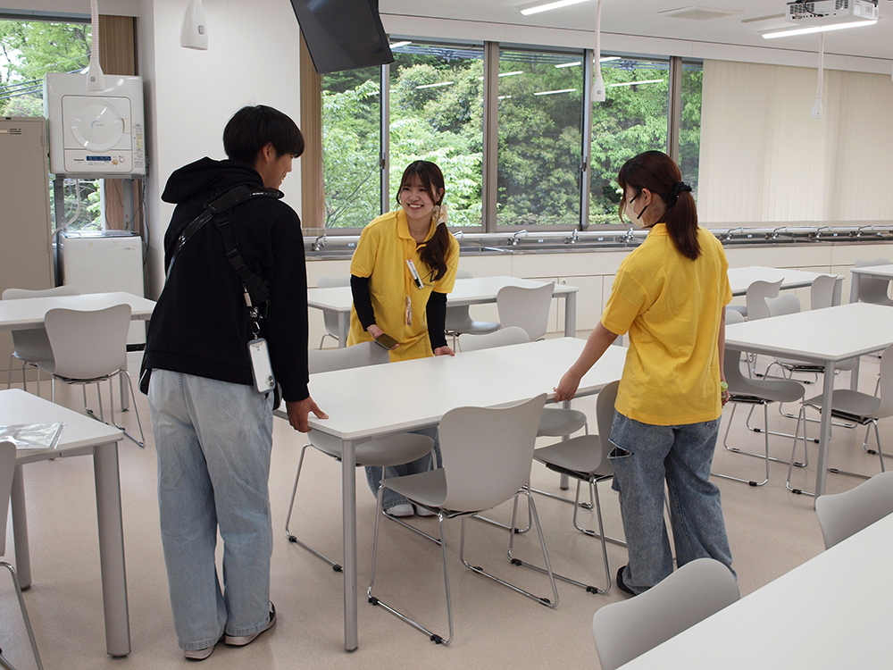 キャンパスツアーでは、学校教育に対応した設備のある教室やライブラリーをはじめ、本学の充実した設備を在学生が案内しました。