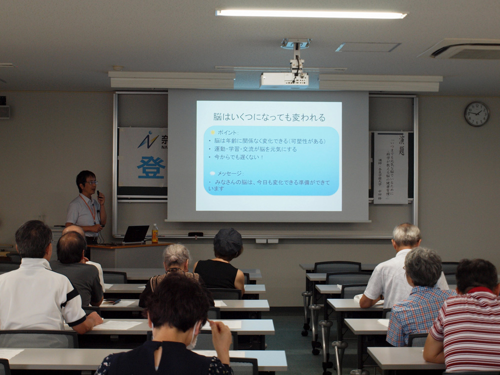 9月13日(土)、地域の方々に多数ご参加いただき、登美ヶ丘カレッジ 第27回「いつまでも元気な脳でいるために-科学が教える脳の健康習慣-」というテーマで公開講座を行いました。
