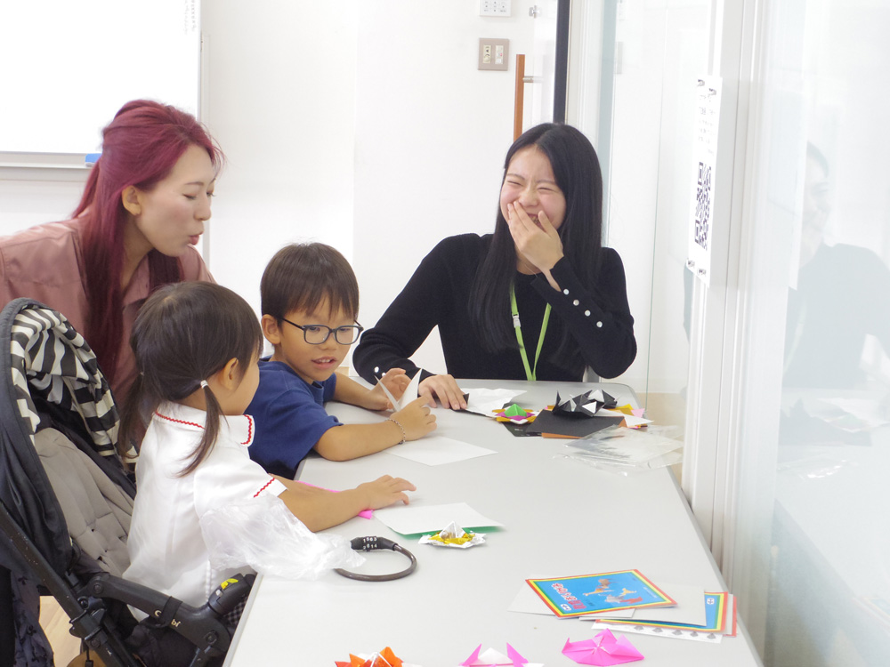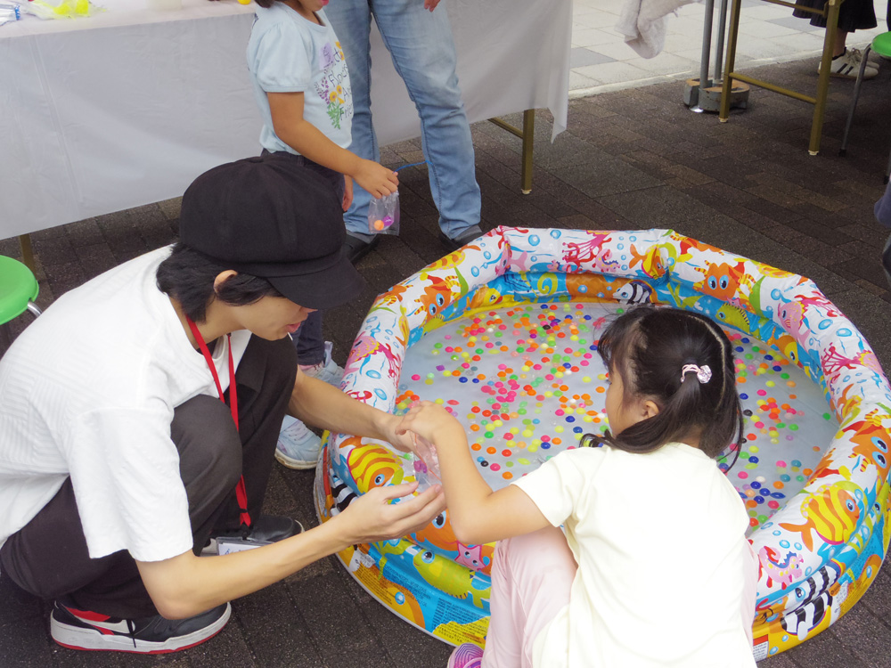 人間教育学部によるコーナーでは、小さなお子さんが折り紙や水でっぽうを楽しむ姿が見られました。