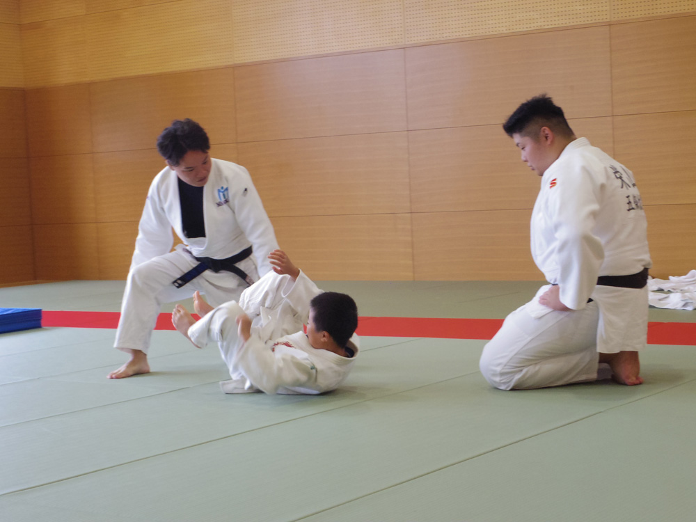 柔道サークルはアリーナの道場で柔道体験を実施し、来場者に柔道の魅力を伝えていました。